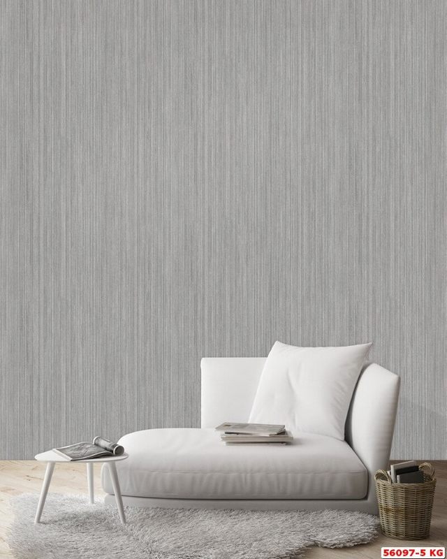 Không gian nội thất hiện đại được trang trí bởi sản phẩm giấy dán tường hiện đại màu xám đậm và các vân kẻ sọc cao cấp.