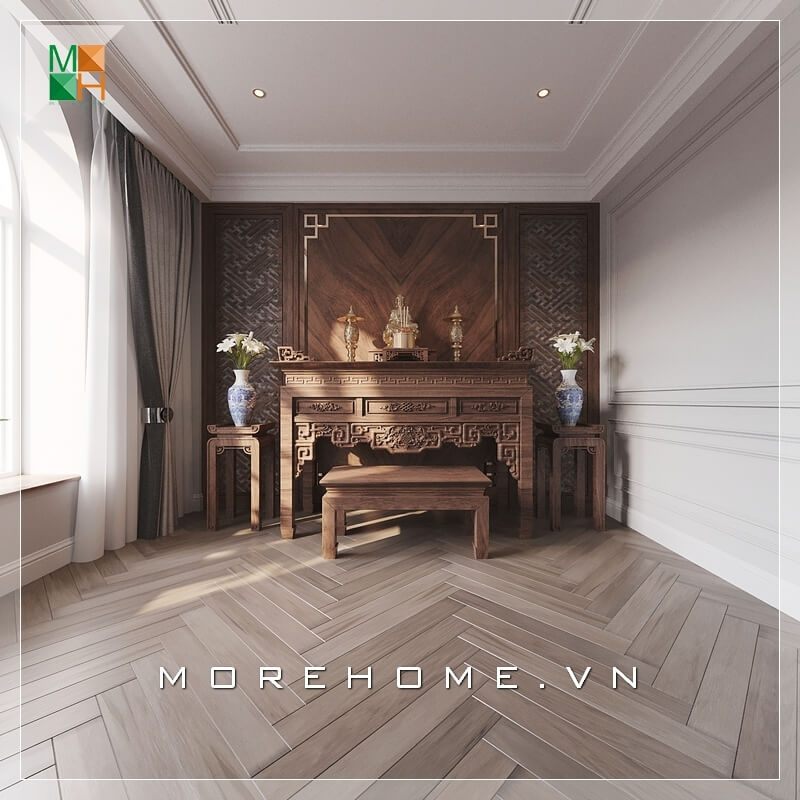 của bạn Mẫu bàn thờ gỗ óc chó cao cấp mang đến nét tinh tế của phong cách tân cổ điển nâu, tạo nên một ấn tượng trầm ấn trong biệt thự của bạn.